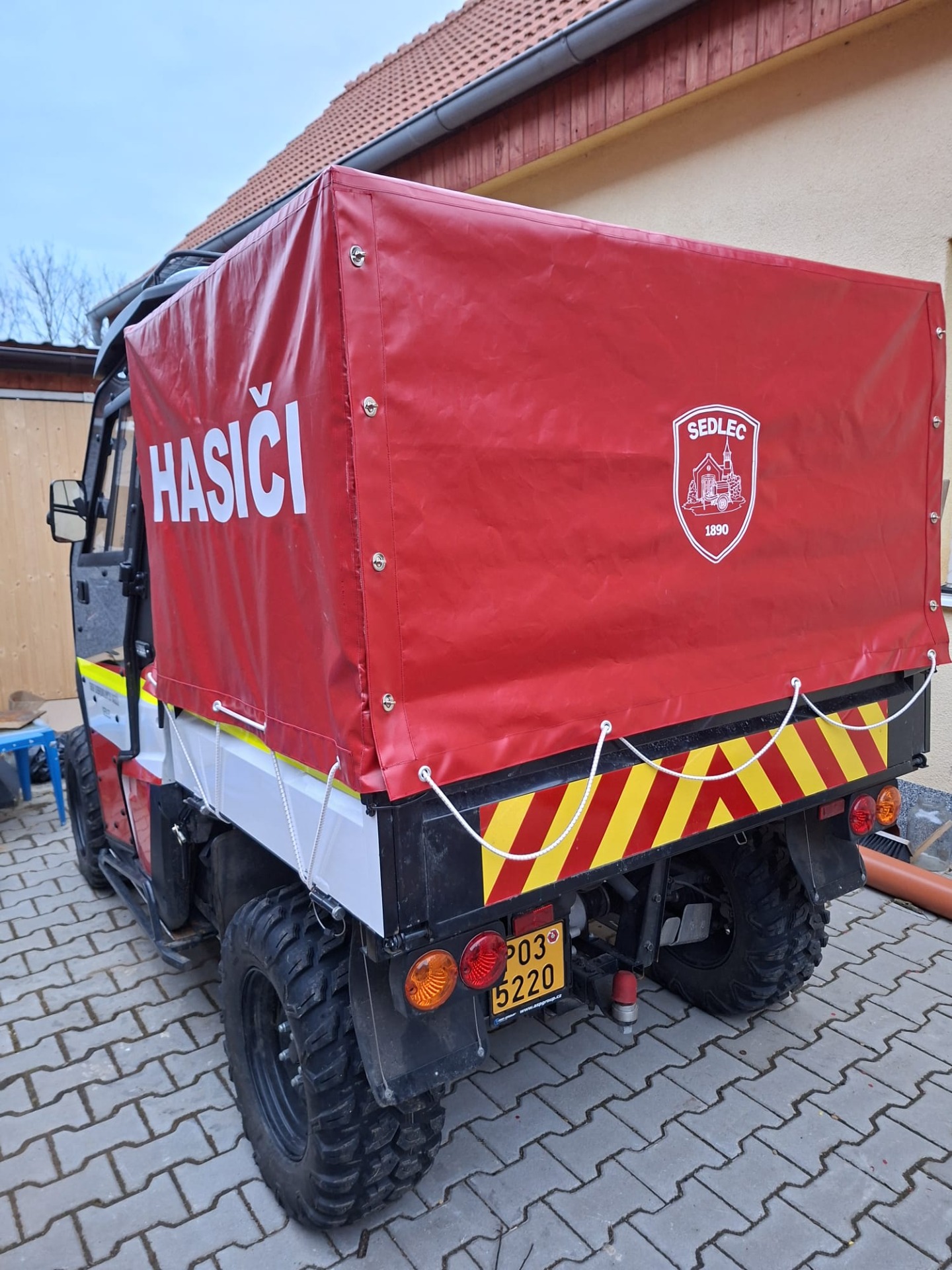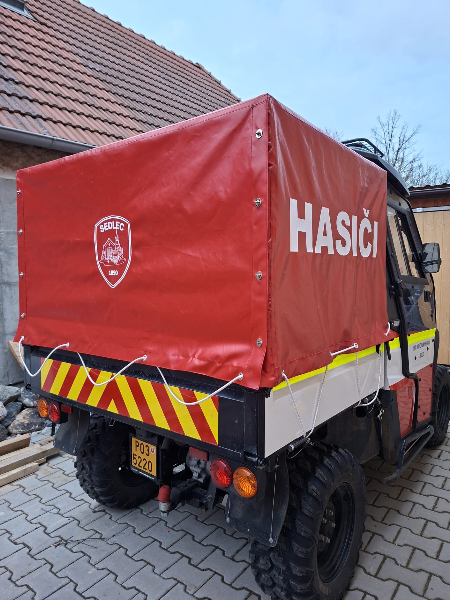 Plachta šitá na míru na nástavbu čtyřkolky včetně potisků.