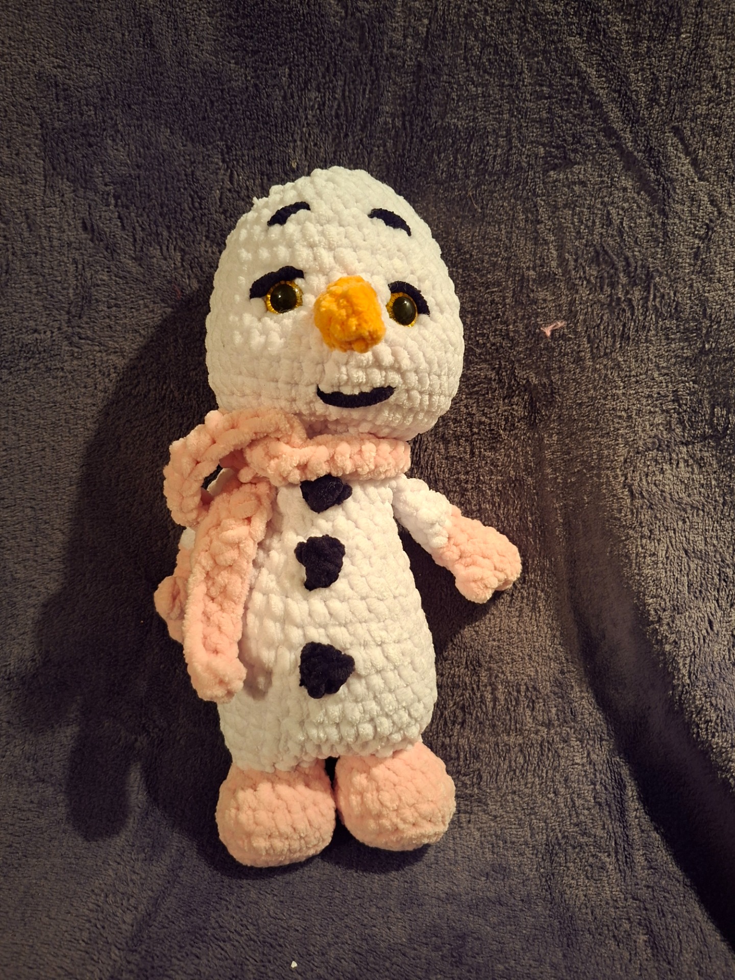 Ručně háčkovaný sněhuláček.
