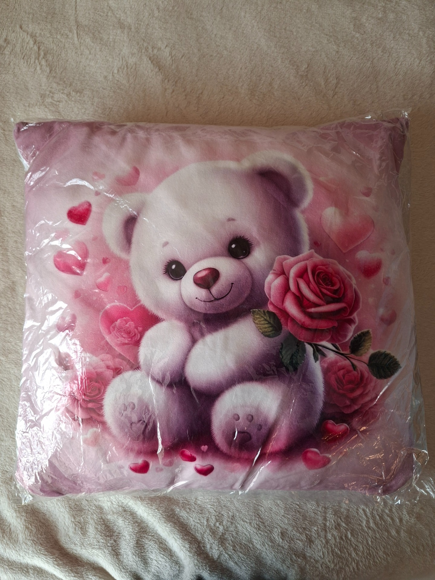 Polštář medvídek s růží