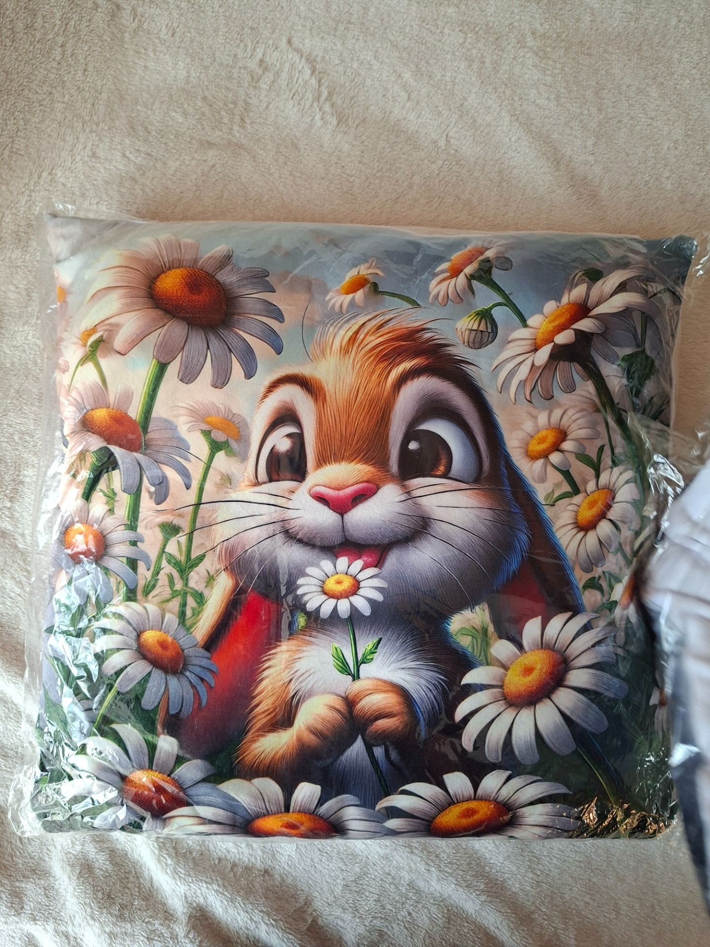 Polštář zajíček v kopretinách
